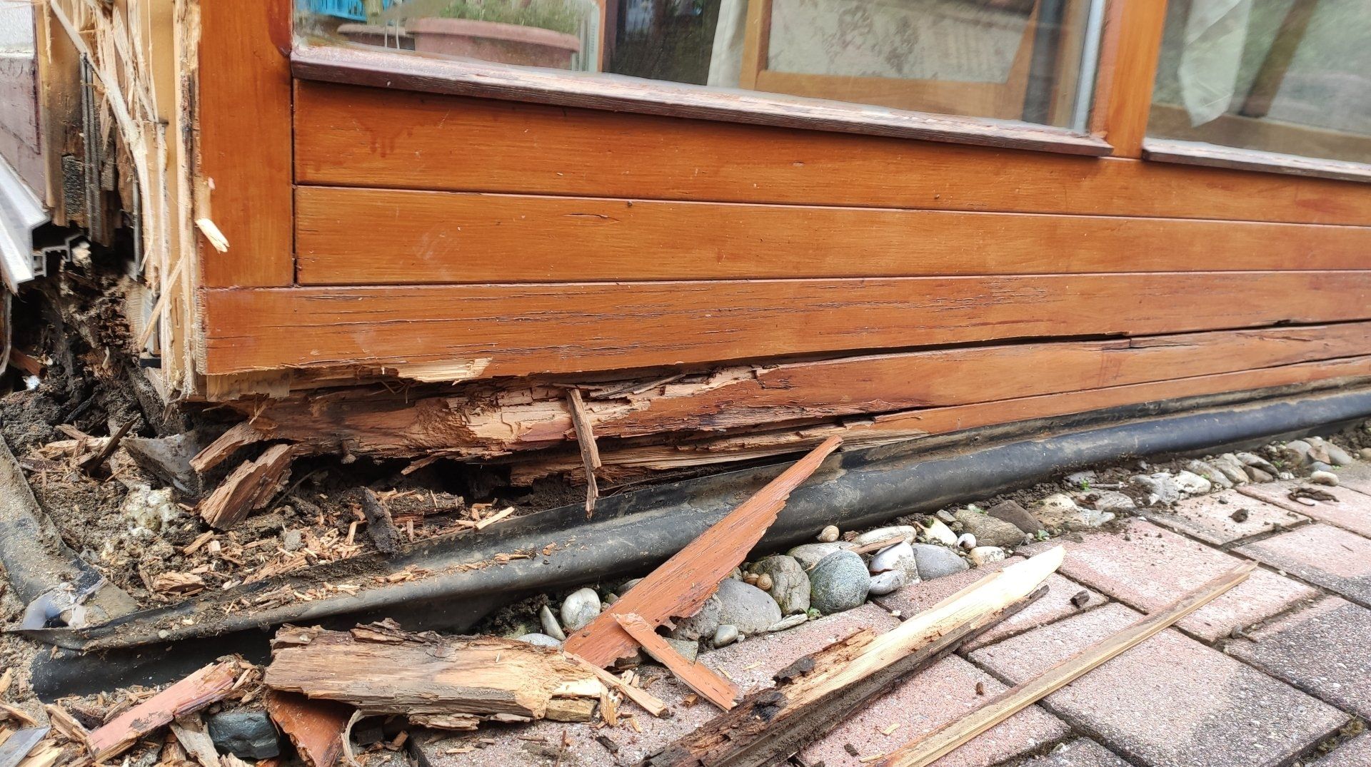 Wir ersetzen alle beschädigten Teile mit Holz und-oder